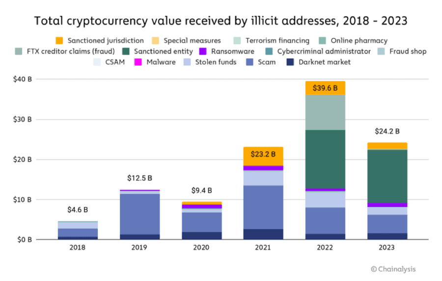 - Up to $24.2B was received by illegal addresses