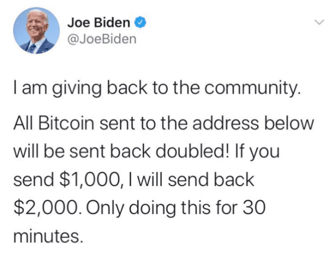In another 2020 case, scammers hacked Joe Biden’s Twitter account and sent messages promoting cryptocurrency scams.