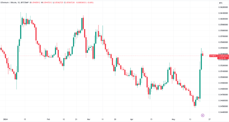 However, on the flip side, Filbfilb hinted if the ETF gets a green light, Bitcoin could strap on its moon boots and blast off into price discovery territory, possibly even reaching a jaw-dropping $80,000. So, it’s either back to the future or straight to the moon. Besides, ETH/BTC trading pair has hit its highest level in 2-months since May 21, as we write this.