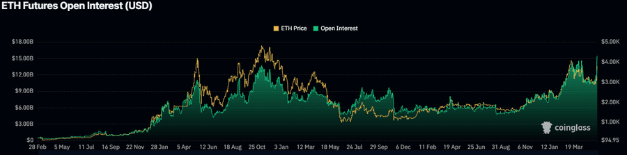 Following this week’s activation of the Ethereum ETF hype, and Bloomberg’s senior ETF analyst Eric Balchunas projections for an ETF approval going from 25% to 75% , Ethereum’ futures market’s open interest has soared by 24.3% on the 3-day chart from $11.25 billion to a staggering $14.87 billion.