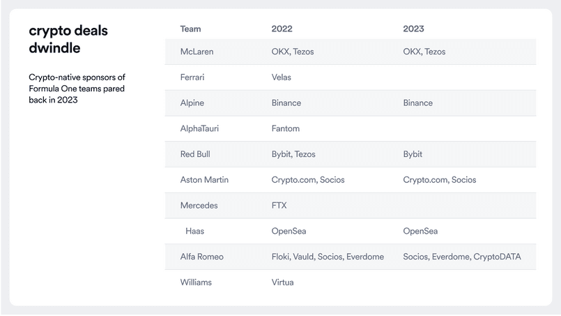 Formula 1’s top teams are all in on crypto cash. McLaren’s rolling with Tezos and OKX, Haas has OpenSea backing them up, and Alpine’s getting a boost from Binance, even spinning out their fan token. And Crypto.com has hit the jackpot, landing smack dab in the middle of the action with huge fan crowds from Formula 1. No one hides the fact that some of their sweet partner deals have boosted its growth.
