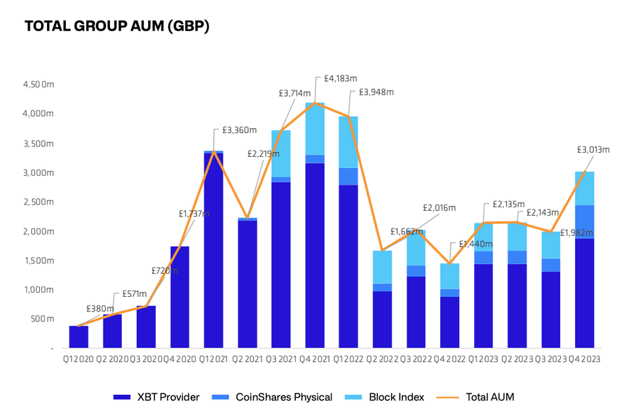 The company proudly boasts $3.81 billion in total assets under management (AUM) as of December 31, 2023. A significant chunk of this, around $3.09 billion, sits snugly on the balance sheet of the group’s exchange-traded products (ETPs) issued by XBT Provider and CoinShares Digital Securities. This figure, by the way, is highly dependent on the Bitcoin and Ether rates.