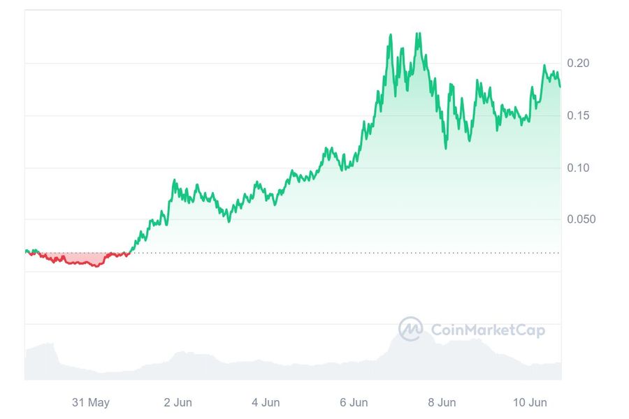 As we talk, the token’s price is already 809% up since its launch price and has grown from around $0.017 to $0.18 in less than 2 weeks.