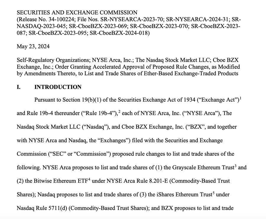 The day that all crypto enthusiasts have been eagerly awaiting has arrived! The Securities and Exchange Commission (SEC) approved 19b-4 applications from VanEck, BlackRock, Fidelity, Grayscale, Franklin Templeton, ARK 21Shares, Invesco Galaxy, and Bitwise, greenlighting rule changes allowing the listing and trading of spot Ether ETFs on respective exchange platforms. This groundbreaking decision comes amidst rumors swirling around whether the securities regulator should label Ether as a security.