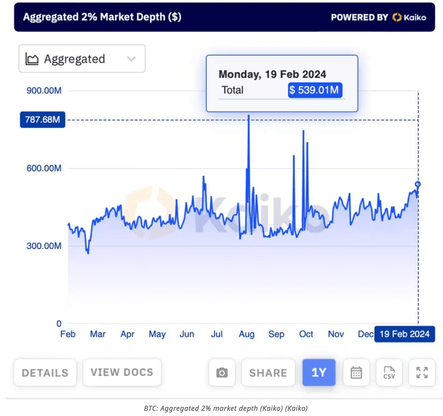 And we have gotten to the point where, compared to the previous year, American trading platforms now account for almost half of the buy and sell orders within 2% of the average Bitcoin price this year. This is all just since the adoption of ETFs!