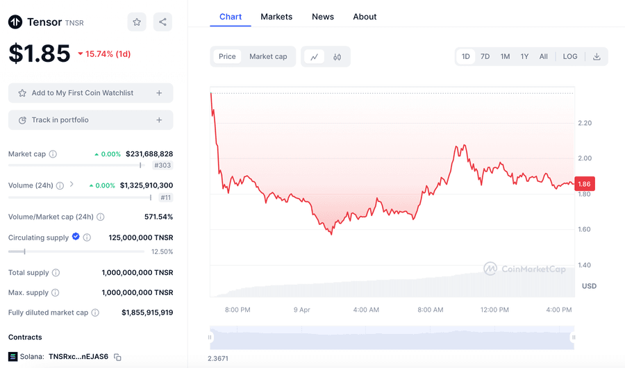 According to CoinMarketCap, the current price of TNSR stands at $1.94 per token, which is 33% below its peak of $2.45. Newly minted tokens are usually known to fluctuate in value, so there’s nothing unusual about this.