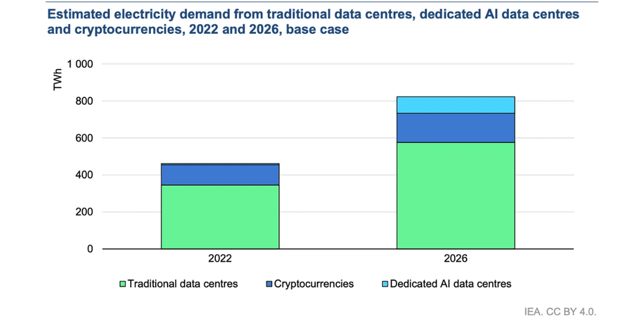 It takes power to keep the engines of crypto and AI running, you see, and apparently, the consumption levels show an upward trajectory, with crypto energy use expected to grow by 30% and AI making an enormous jump of 1000% in the next 3 years. The data is from the “Electricity 2024” report by the International Energy Agency.