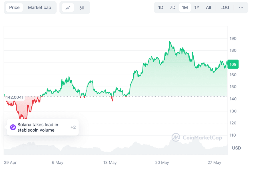 Solana has been working on the security of its network, and it is certainly paying off. Solana (SOL) is currently trading at $165.79 at the time of this writing, a $21 increase from its trading price of $144 this time last month. Not many cryptocurrencies can boast of such an increase, and SOL shows no signs of slowing down.
