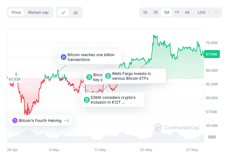 The Securities and Exchange Commission (SEC) has also approved Bitcoin ETFs, which means more investment opportunities. If there’s any crypto people would give their lives to get a piece of investment in, it’s Bitcoin, so the future looks good for the price of Bitcoin. From $64,545.02 per Bitcoin this time last month to $69,045.05, that’s a $5,000 increase, and they call it the “BIT” coin?