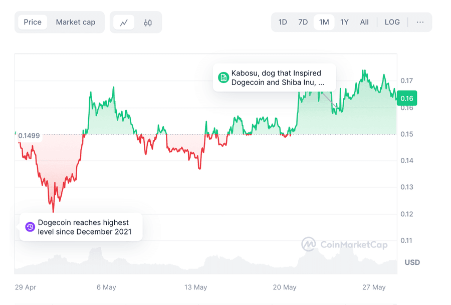 What started as a joke is now worth $0.1719 at the time of this writing, up from $0.149707 last month with the help of a few celebrity endorsements and everyday investors. It seems the dog-themed coin is no longer the underdog. Speaking of dogs, Kabosu, the Japanese Shiba Inu dog that is the face of Dogecoin, just died, but Kabosu can rest happily knowing that its coin is doing pretty well.