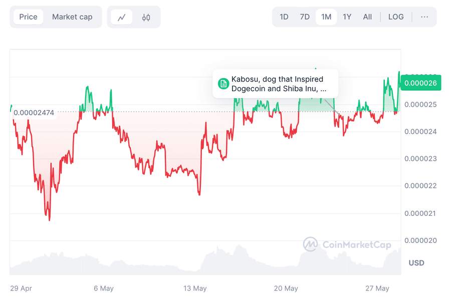 Still on meme and dog-themed coins, Shiba Inu (SHIB) has also been doing good. Shiba Inu was called the Dogecoin killer by many when it first came out, but while Kabosu may be dead, Dogecoin is still holding its own. Regardless of that, Shiba Inu has generated massive public interest.