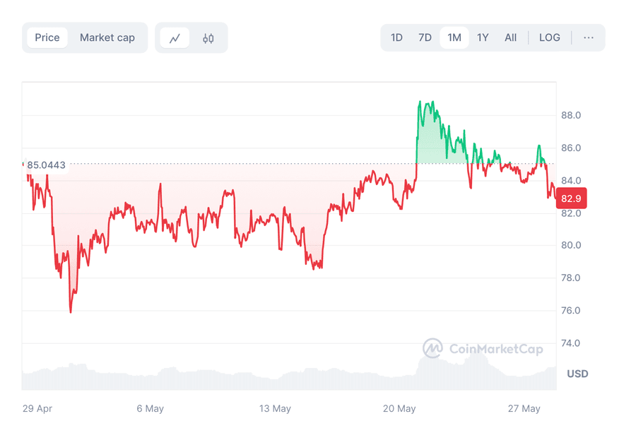 Compared to other cryptocurrencies like Bitcoin, Litecoin transactions are processed at the speed of light and have lower transaction costs. It is perhaps one of the toughest altcoins out there, surviving all sorts of things that have sent many other coins into obscurity. Litecoin is currently trading at $84.69.