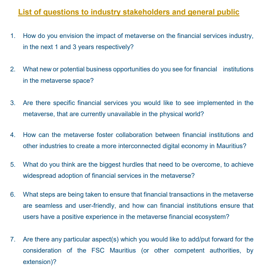 The Financial Services Commission (FSC) of Mauritius is spearheading an initiative to integrate the metaverse into the financial services. In this article, we will delve into the details of Mauritius’ pioneering endeavor, exploring how the FSC is seeking collaboration and insights from the public and industry stakeholders to shape the financial services of the future.
